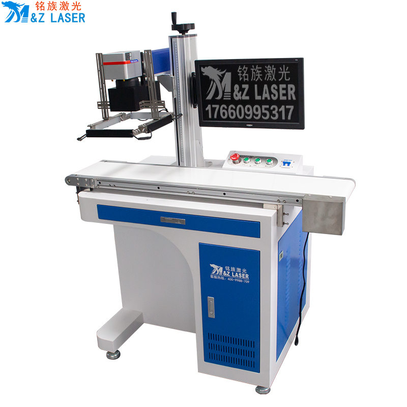 CCD視覺系統(tǒng)(攝像定位)激光打標(biāo)機(jī)-主要針對于批量不規(guī)則打標(biāo)加工中夾具設(shè)計制造困難導(dǎo)致的供料難、定位差、速度慢的問題,CCD攝像打標(biāo)通過采用外置攝像頭實時拍攝、抓取特征點的方式予以解決。本系統(tǒng)隨意供料、精確定位、打標(biāo),極大的提升了打標(biāo)效率。通過視覺系統(tǒng)來輔助激光打標(biāo),可使激光加工的優(yōu)勢得到更全面的發(fā)揮,不但可以解決打標(biāo)的精度問題,同時具有高適應(yīng)性,無須再使用夾具,降低成本,同時提高了產(chǎn)品線的自動化流程,減少了人工參與,提升了系統(tǒng)效率。一般的激光打標(biāo)機(jī),在打標(biāo)加工的時候,所加工零件必須處于一個固定的位置,并且加工過程中不能晃動,加工的圖案才能加工到產(chǎn)品指定位置上,這些都是我們對普通激光打標(biāo)機(jī)加工工藝的常識。